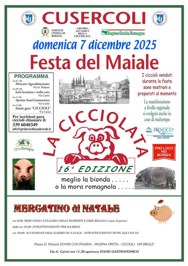 Meglio la bionda o la mora romagnola?...per deciderlo l'appuntamento è il 7 dicembre 2025 a Cusercoli con la Festa del Maiale – 16° edizione della Cicciolata.
