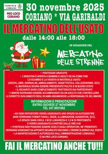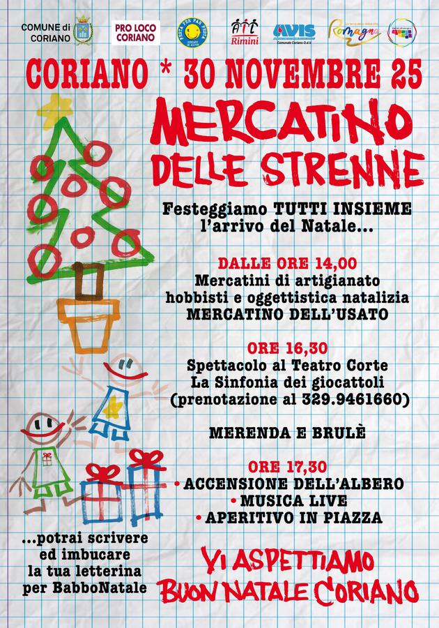 A Coriano (RN) domenica 30 novembre torna il tradizionale Mercatino delle Strenne, che vi trasporterà nell'atmosfera del Natale.