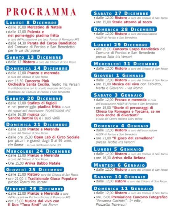 Saranno numerosi gli appuntamenti dei giorni che precedono e seguono il Natale, seguite anche la pagina Facebook della Pro Loco Pro-Loco Portico Di Romagna