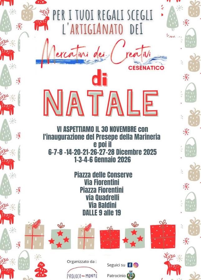 I Mercatini dei Creativi di Cesenatico, organizzati dalla Pro Loco del Monte, proseguono fino al 6 gennaio.