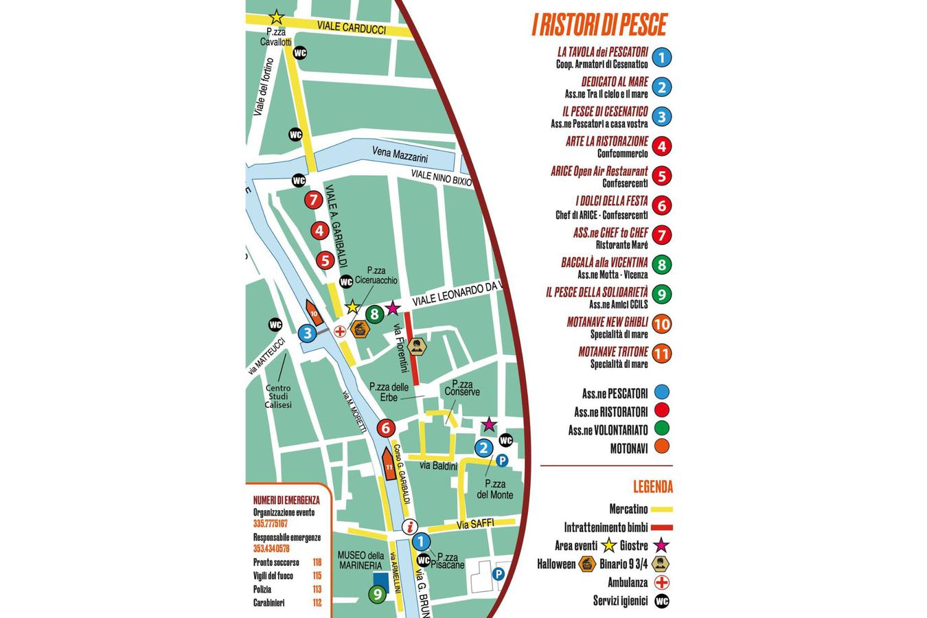 10 punti ristoro gestiti da pescatori, ristoratori, volontari e due motonavi trasformate in ristoranti galleggianti.