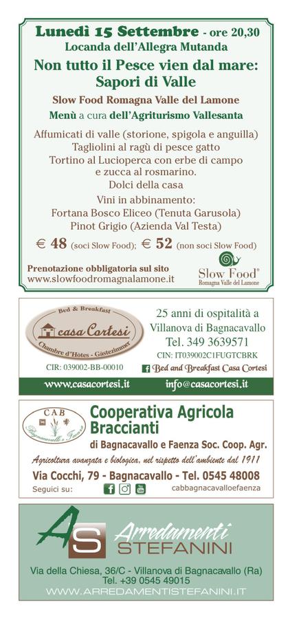 LUNEDI CENA SLOW FOOD con un menu che propone i sapori della valle.