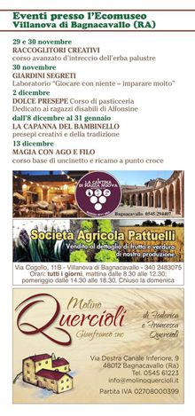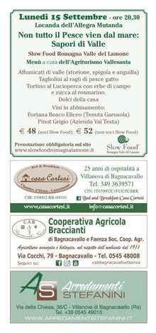 Come sempre sarà possibile gustare la cucina delle azdóre presso la Locanda dell'allegra mutanda, all'interno dell'Ecomuseo: oltre alla CENA A TEMA DEL VENERDI, PerBacco che cena, con menu tradizionale in abbinamento ai pregiati vini del Consorzio Il Bagnacavallo (€ 30, prenotazione obbligatoria tel. 0545 280920). Nelle giornate di sabato e domenica, a pranzo e cena, sarà proposto un menu alla carta con i tradizionali cappelletti e l'immancabile binomio strozzapreti e strozzasindaci, ottimi taglieri, piatto vegetariano, secondi a base di carne e gli squisiti dolci caserecci (si consiglia la prenotazione tel. 0545 280920).