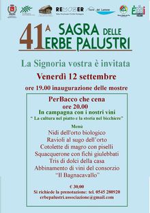 Vi aspettiamo alla 41° sagra delle erbe palustri, iniziativa che identifica un territorio e celebra la creatività di una comunità che aveva realizzato un economia totalmente rispettosa dell'ambiente. La Sagra delle Erbe Palustri è organizzata dall'associazione culturale Civiltà delle Erbe palustri e dal Comune di Bagnacavallo con ingresso libero alle mostre, ai laboratori, alle animazioni e alla manifestazione.